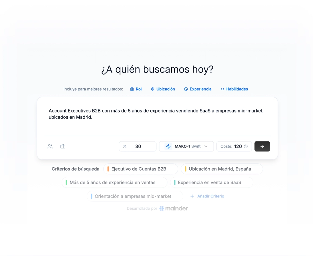 Mainder entiende a quién estás contratando y adapta la puntuación, la búsqueda y la estrategia de mercado en consecuencia.